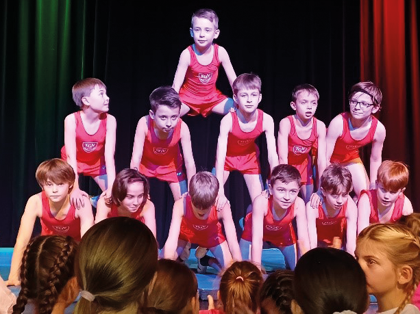 Als Marionetten und Akrobaten am Boden und auf einer Bockleiter durfte die Leistungsgruppe 1 unter der Leitung von Diana Hehl das Publikum in ihren Bann ziehen, ehe die Mädchen ab der dritten Klasse von Jaqueline Sambo, Gertrud Knauth, Yvonne Rothenburger und Carina Schmied ihr Können an zwei großen und mehreren kleinen Kästchen zeigten.