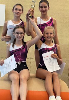 Bei den Frauen in der Offenen Klasse (ab 12 Jahren) lieferte sich unsere Mannschaft mit der TSG Heilbronn und der TG Weinsberg packende Duelle. Am Ende musste sich unsere Mannschaft mit Riccarda Strauch, Elyssia Brose, Romy Würtz, Finja Bacza, Louisa Emilia Ratkoceri, Anna Betzner, Sina Widowski und Leni Bofinger den beiden Mannschaften geschlagen geben und wurde Dritter.