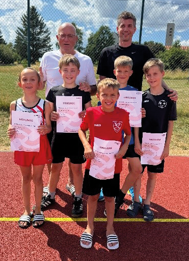 Die Plätze 1-3 sowie Jan Kraft (AK8) und Elias Herrmann (AK11), die jeweils den vierten Platz belegten, haben sich für das Landesfinale im Mehrkampf am 12.07. (Mädchen) und 13.07.2025 (Jungs) in Meßstetten qualifiziert.